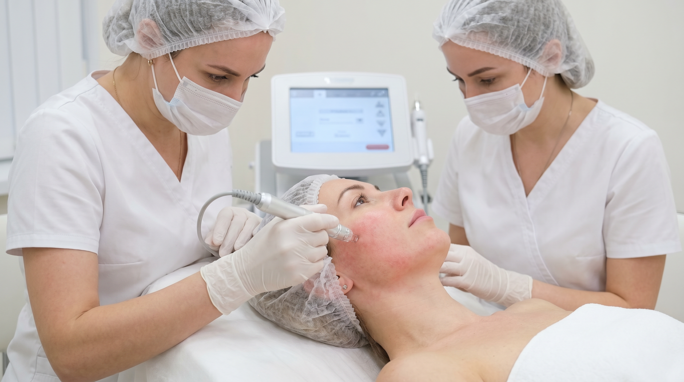Перед первой процедурой обязательна развёрнутая консультация врача-косметолога. Специалист собирает анамнез (перенесённые заболевания, принимаемые препараты, наличие имплантатов), осматривает кожу под дерматоскопом, оценивает тип проблемы (рубцы, поры, птоз, морщины), фототип кожи и степень выраженности возрастных изменений. На основании этого определяются зоны обработки, оптимальные параметры аппарата (глубина введения игл, интенсивность RF-энергии, шаг перемещения насадки), число процедур в курсе и возможность комбинирования с другими методиками.